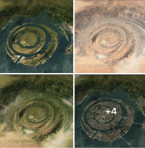 التفسير العلمي لها حاليا يرى أنها قد تكون قبة جيولوجية قديمة ارتفعت ثم تعرّضت للتعرية عبر ملايين السنين، فبانت طبقاتها على شكل حلقات دائرية واضحة. وهناك رأي علمي سابق كان يقول إنها فوهة بركان سحيق، أو أثر سقوط لنيزك كبير قبل ملايين السنين.. ويقال إنها قد تكون هي مدينة أطلنطس المفقودة التي تحدث عنها افلاطون وذكر أنها جنوب أعمدة هيرقليدس (جبل طارق).