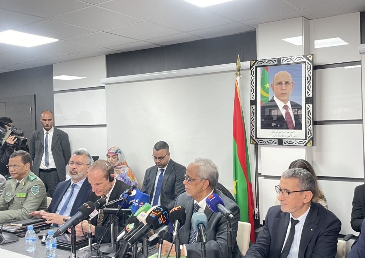 احتضن البنك المركزي الموريتاني في نواكشوط، اليوم الجمعة، مؤتمرا صحفيا مشتركا ضم معالي وزير الشؤون الاقتصادية والتنمية، السيد عبد الله سليمان الشيخ سيديا، ومعالي محافظ البنك المركزي، السيد محمد الأمين ولد الذهبي، إلى جانب رئيس بعثة صندوق النقد الدولي، السيد فيليكس فيشر، خُصص لعرض نتائج مراجعة البرنامج الاقتصادي القائم، واستشراف ملامح برنامج جديد للتعاون بين موريتانيا وصندوق النقد الدولي.