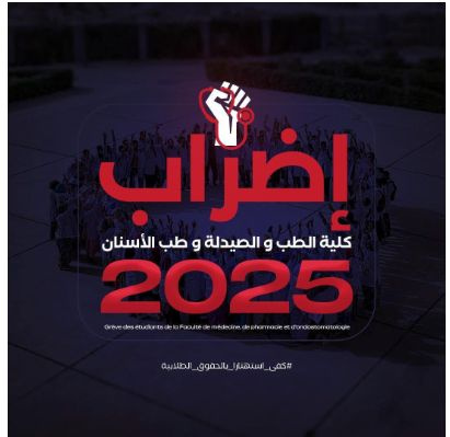 أعلن طلاب كلية الطب والصيدلة وطب الأسنان الدخول في إضراب عن الحصص والتربصات يوم غد الاثنين داعين طلاب الكلية للحضور لمسيرة حاشدة تنطلق من الكلية.