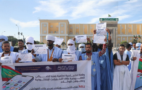 احتج اليوم الأربعاء العشرات من أعضاء تجمع نقاط التحويل الرقمي أمام القصر الرئاسي بنواكشوط، وذلك رفضا للضريبة المفروضة على التحويلات الإلكترونية.