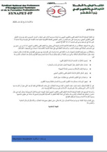 إنّ النقابة الوطنية لأساتذة التعليم الفني والتكوين المهني، وإذ تؤكد حرصها الدائم على استقرار المسار التربوي داخل مؤسسات التعليم الفني والتكوين المهني، وحرصها على عدم الإضرار...