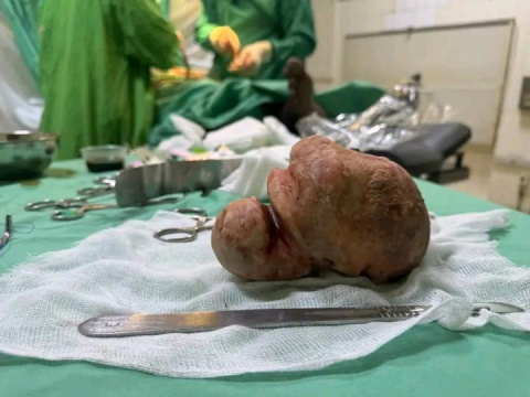 وأوضح الطاقم المعالج أن الحصاة بلغت أبعادها نحو 125 × 116 × 80 ميليمترًا، بوزن قارب 870 غرامًا، مشيرًا إلى أن الحالة كانت نتيجة تطور تدريجي لاضطرابات في الجهاز البولي لم تُعالج في مراحلها الأولى.