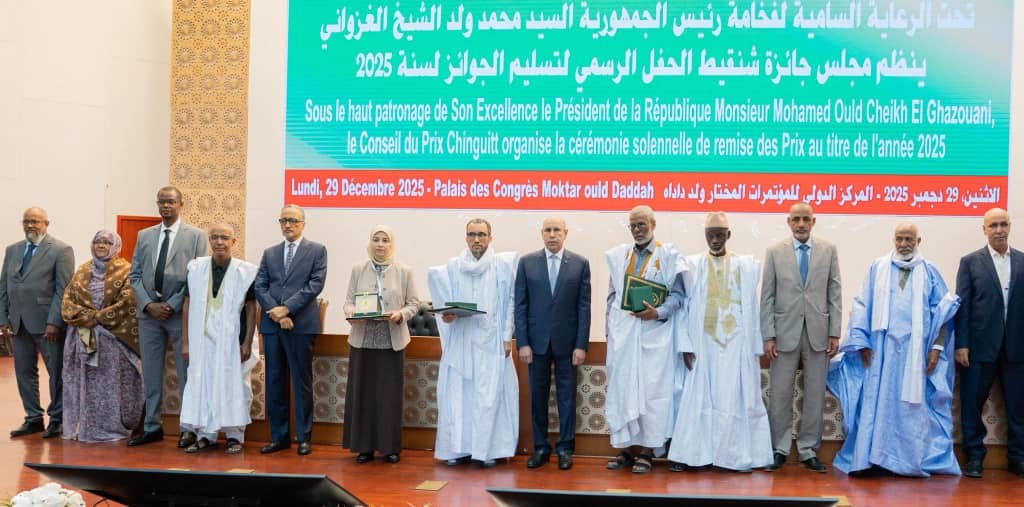 أشرف فخامة رئيس الجمهورية، السيد محمد ولد الشيخ الغزواني، اليوم الاثنين، بالمركز الدولي للمؤتمرات “المختار ولد داداه” في نواكشوط، على حفل توزيع جوائز شنقيط لسنة 2025.