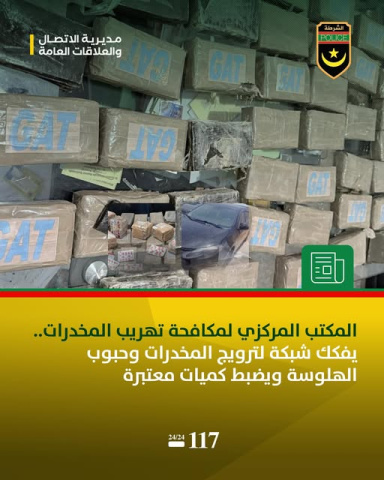 في إطار الجهود المتواصلة لمكافحة تهريب المخدرات والمؤثرات العقلية، تمكن المكتب المركزي لمكافحة تهريب المخدرات والمواد ذات التأثير النفسي، من تفكيك شبكة إجرامية تنشط في مجال ترويج المخدرات وحبوب الهلوسة، عبر عدة نقاط بيع في نواكشوط وبعض المدن الداخلية.
